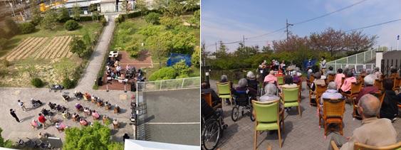 2021.04.08 お花見会(Nice!藤井寺バンドと午後のひととき様)[4月8日] 『Nice!藤井寺バンドと午後のひととき』の皆さまに演奏を披露していただきました。懐かしい曲を聴いて皆さまは口ずさんだり、曲に合わせて手拍子をされたり充実した時間を過ごされていたようでした。明日は最終日、『三曲演奏会』の皆さまの演奏です。お楽しみに。※ボランティア様には、ご利用者との距離を十分に取って演奏して頂いております。 前の記事 次の記事