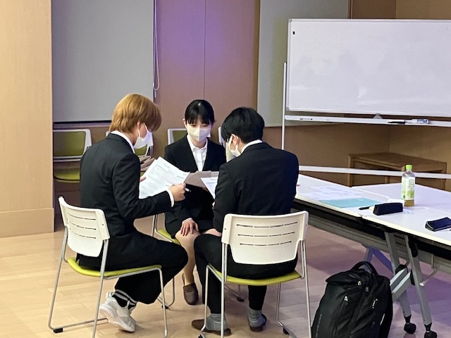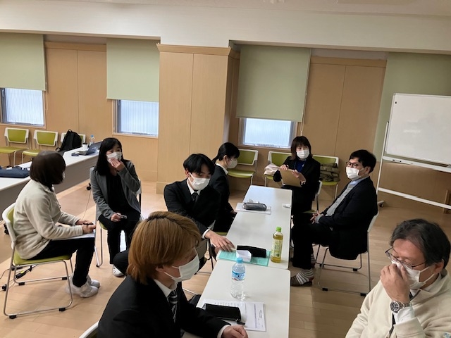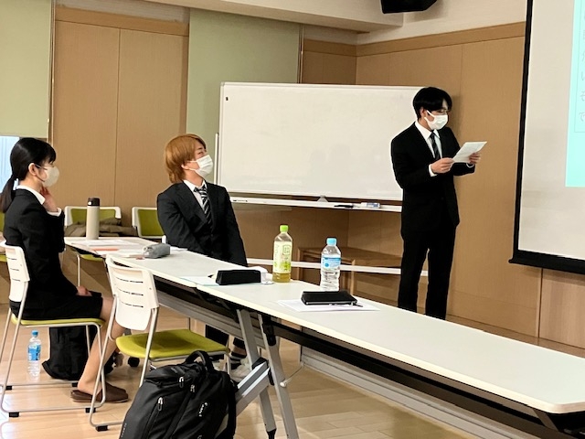 後半は高殿苑福田部門長から接遇マナーを深く学び、どうみょうじ高殿苑大谷部門長からケーススタディのテーマをいただき3人で意見の交換をしながら熱心に話し合いました。