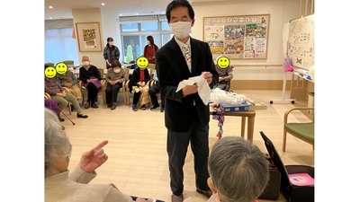 鮮やかな手つきのテーブルマジックでショーが始まりました。ジョー三田さんが次に何をされるのかと、興味深々で利用者様の注目が集まります。