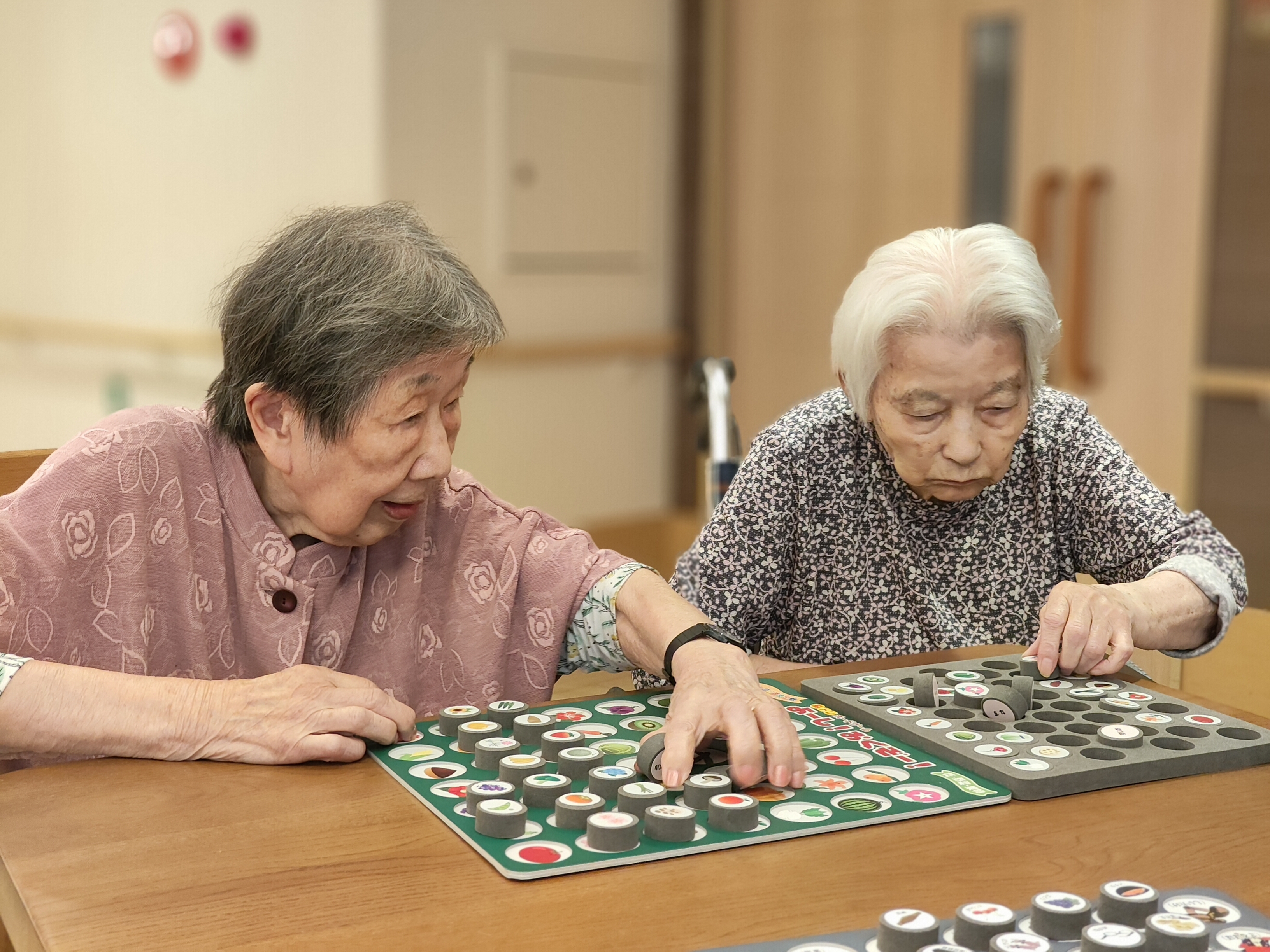 2025.10.11 「よーしおくぞー」でレクレーション **機能訓練** 日常のレクレーションとして、ボードゲーム「よーしおくぞー」で脳トレです!このゲームは、ボードに描かれた絵柄と同じ絵柄の駒をボードの上に置いていきます。集中力が要りますが、みんなで楽しくできました♪用意から片付けまで手を動かすのもリハビリの一環!最初から最後までみんなで協力して取り組みました!またやりたいな~ 前の記事 次の記事