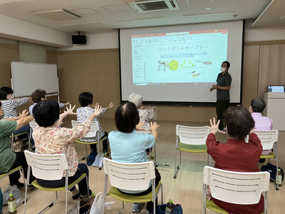 最初に、藤野理学療法士による「家事に役立つ運動や工夫」についての実演講義があり、参加者の皆さんは積極的に身体を動かしていらっしゃいました。