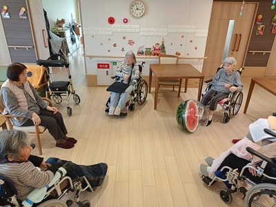 機能訓練を兼ねて、ボールを使ったレクリエーションも実施します。