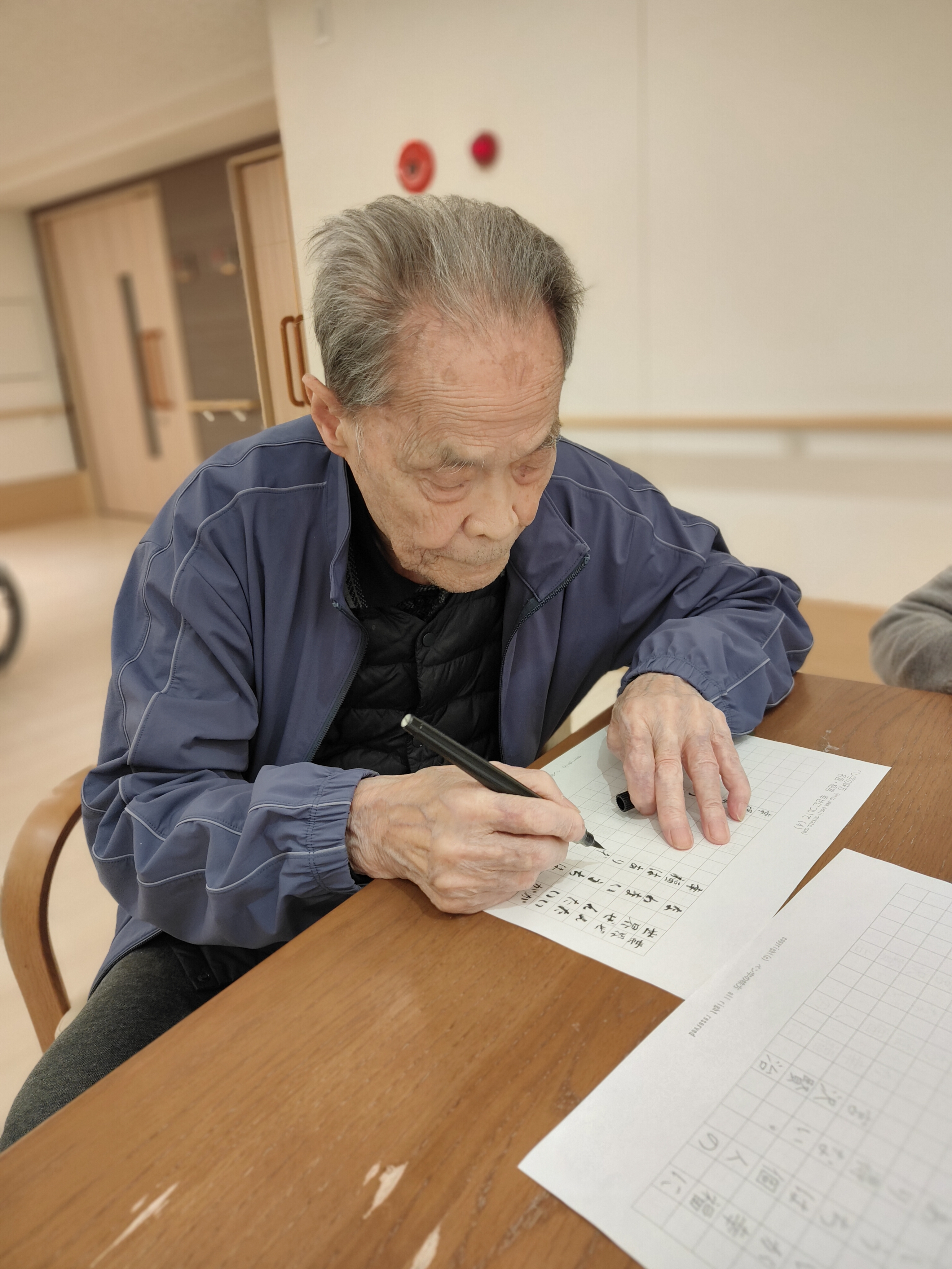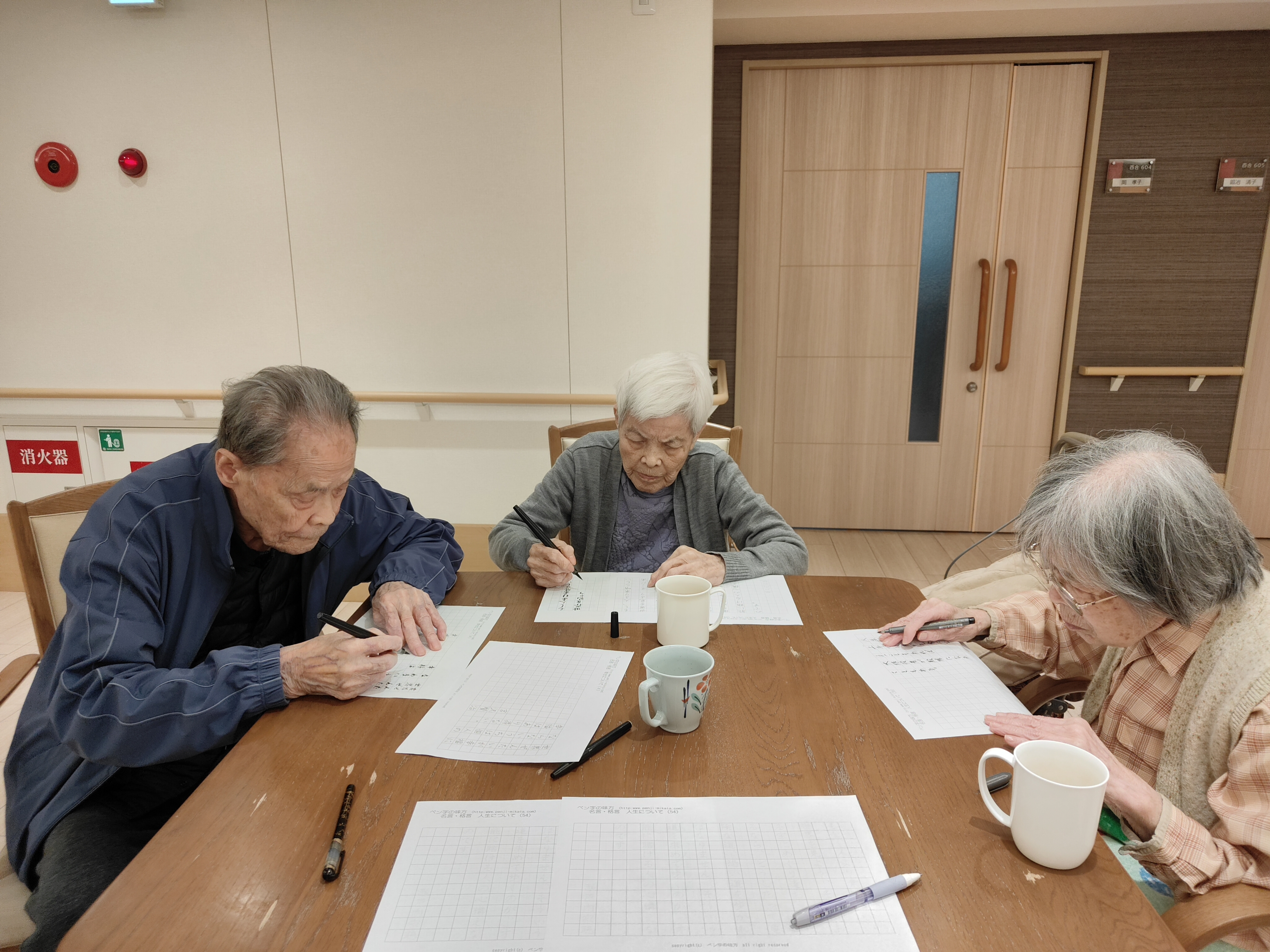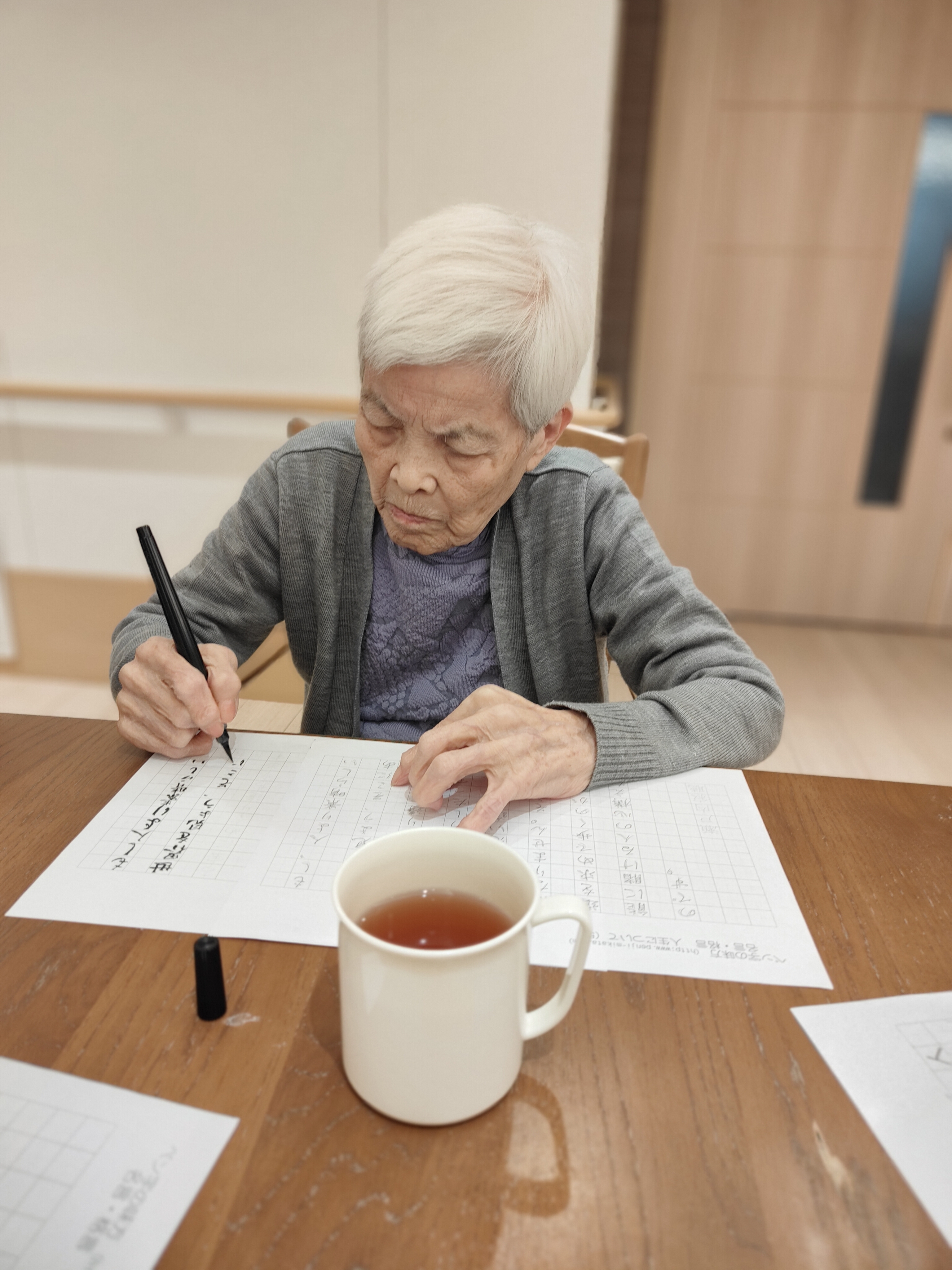 2025.12.17 書道 **機能訓練** 今回は、宮沢賢治など著名作家の名言や格言を筆ペンで模写することに挑戦しました。参加された皆さんは集中して取り組まれました。皆さん「写すだけでも難しいもんやね」と言いながら、とてもきれいに模写されていました。ご夫婦で冗談を言いながら楽しまれていました。とはいえ、表情は真剣そのものです。 前の記事 次の記事